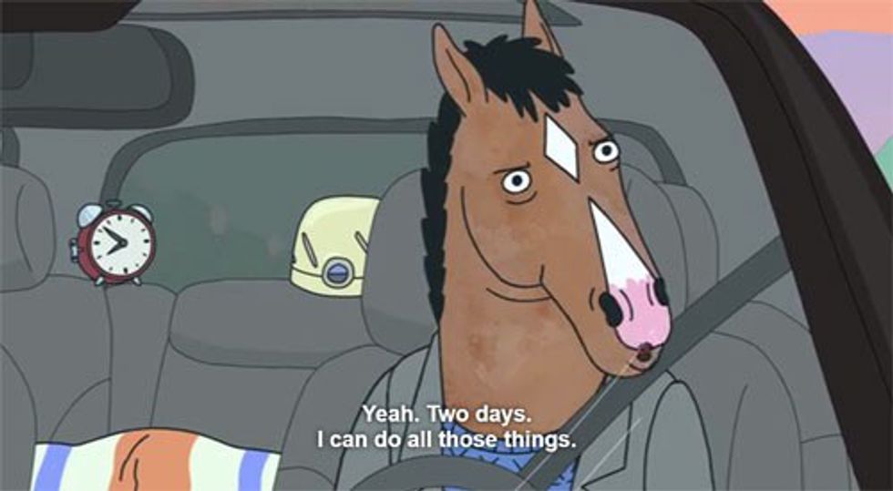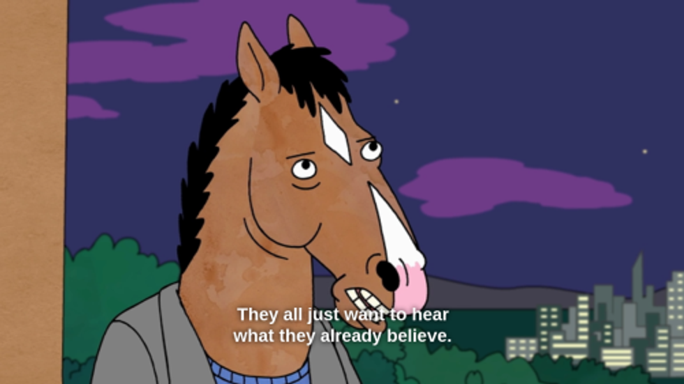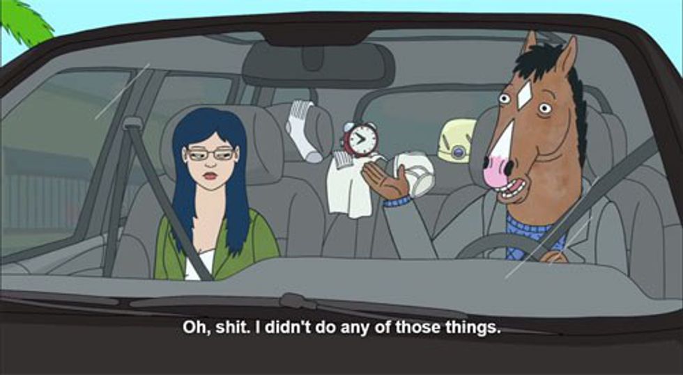 The fact that a 21-year-old girl can relate to a middle-aged fictional horse is saddening for more reasons than are already obvious from the first part of this sentence. If you've seen the show, you know Bojack has done a lot of awful things. And he continually self-sabotages by knowingly hurting himself and others. The fact that he's aware of his sometimes cruel actions almost makes it worse because it's authentic—it happens, and we don't like to admit it.