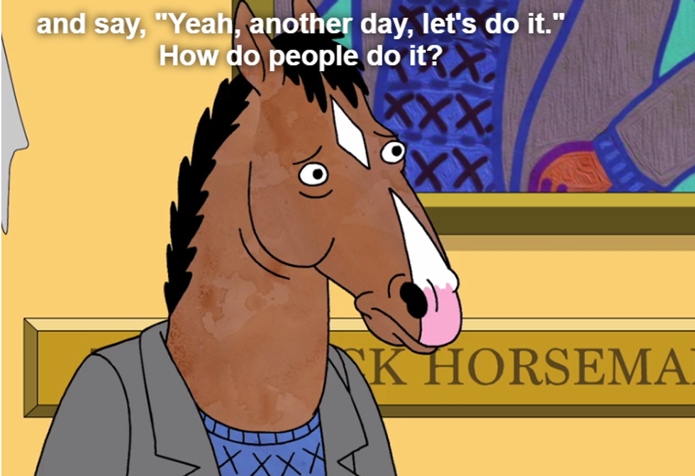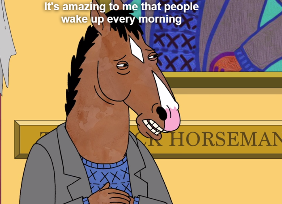 Bojack Horseman, from the Netflix original series of the same name, is one of my problematic spirit animals, as conflicted as I am to admit it.