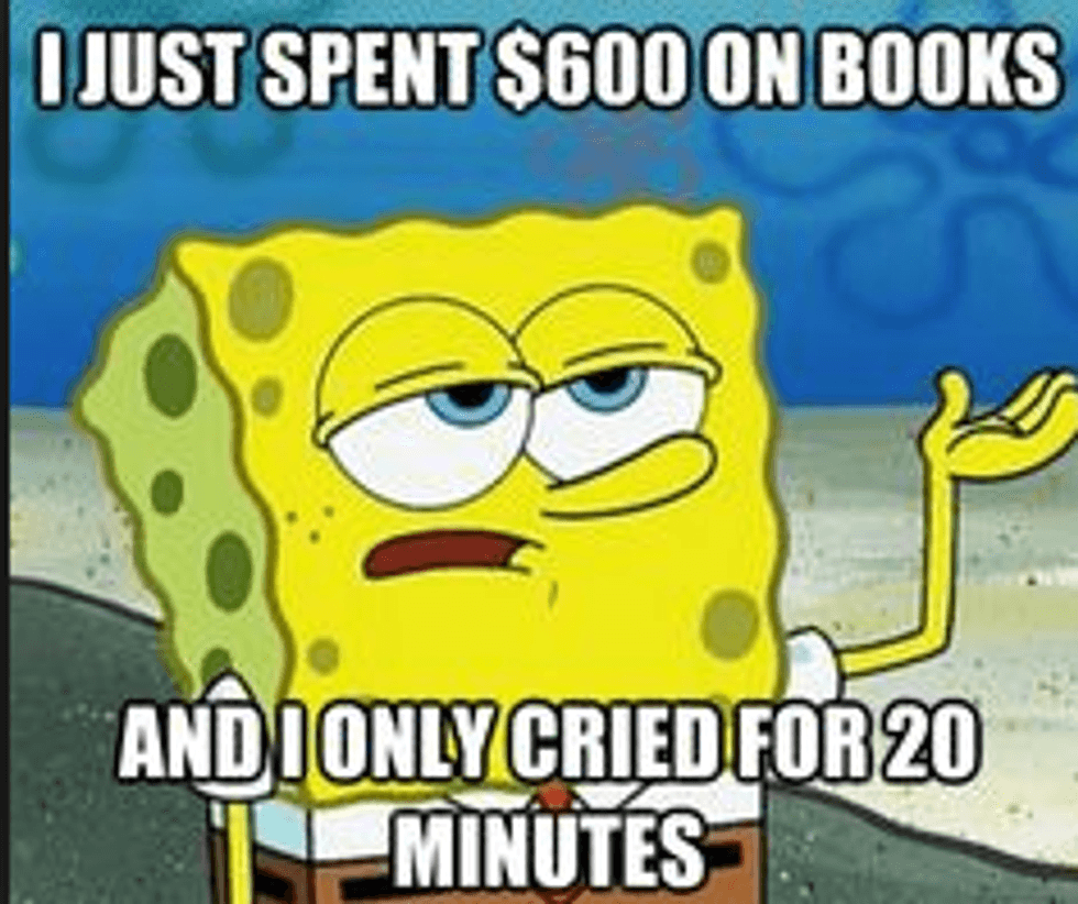 Now that I wasted hours of time devoted to finding the best prices for my books and three websites later I'm ready to start my new semester with only spending $111.48. Saving me $177.17