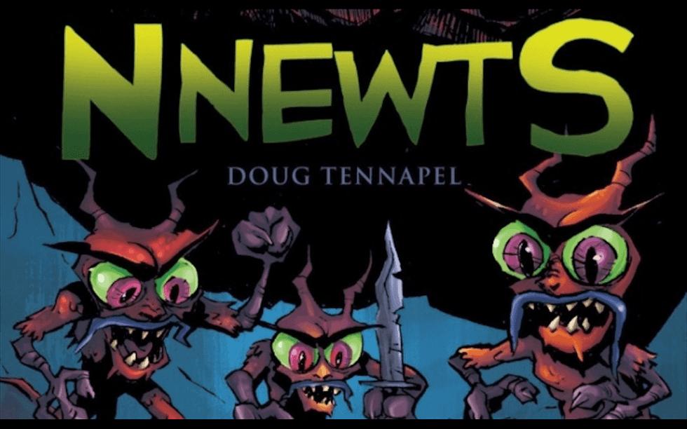 Doug TenNapel’s wonderful graphic novel, Nnewts, Book One: Escape from the Lizzarks, is an engaging, beautiful story of perseverance in the midst of loss, told with witty dialogue and beautifully illustrated in Doug’s striking and uniquely simplified style.