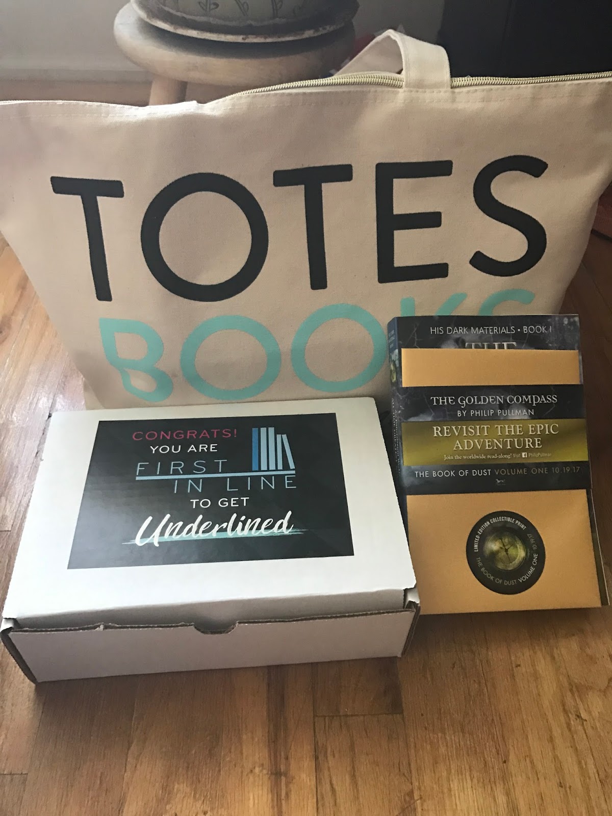 Penguin had a bunch of random giveaways throughout the day with no coherent line, and they had a pretty cool giveaway promoting their new Underlined product. We got a zippered tote, a box with two books and some swag, a pouch, and a beach towel for signing up for Underlined. One of the books was The Golden Compass, which I've been thinking of reading anyway, so that was a cool surprise.