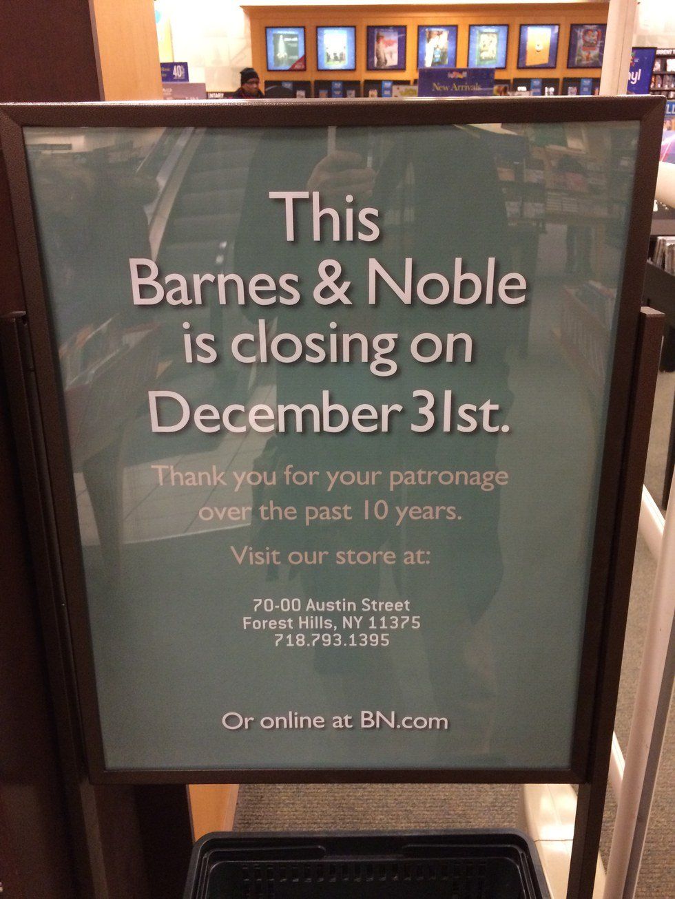 Things seemed normal until the end of 2014 when our neighborhood learned that the closest Barnes and Noble would be closing. My family was devastated that our favorite bookstore--the place we had spent years of our lives lost in--would be shut down, and converted into a clothing store. We wrote letters to everyone we could think of--the store manager, the property owner, the borough president--my sister even started a petition to save the store. Yet it was all to no avail. Barnes and Nobles closed one of its three Queens locations.