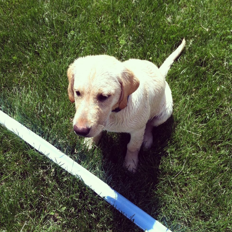 Not only does he love swimming in dark, dirty pond water, but he also enjoys swimming in clean, clear pool water. He had just finished swimming in our pool at our old house, and we were backwashing it.