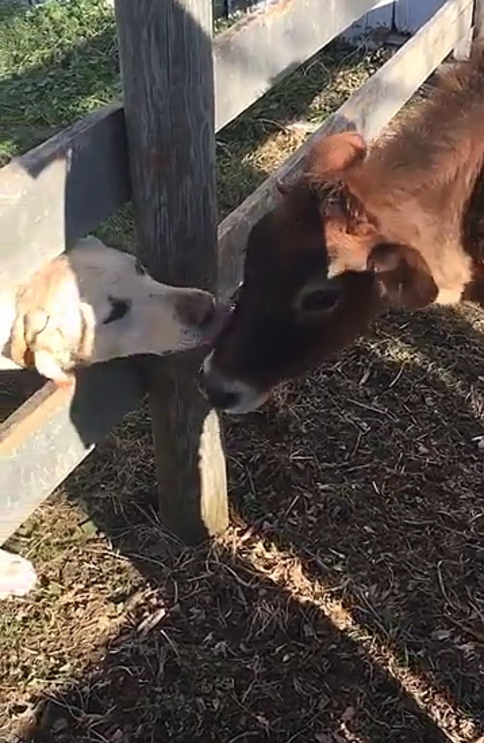 Last but not least, he loves, loves, loves other animals. He acts motherly to our cows (the one in the picture is Holly), which is strange considering he is a male. It shows how sweet he is and how blessed we are to have him.