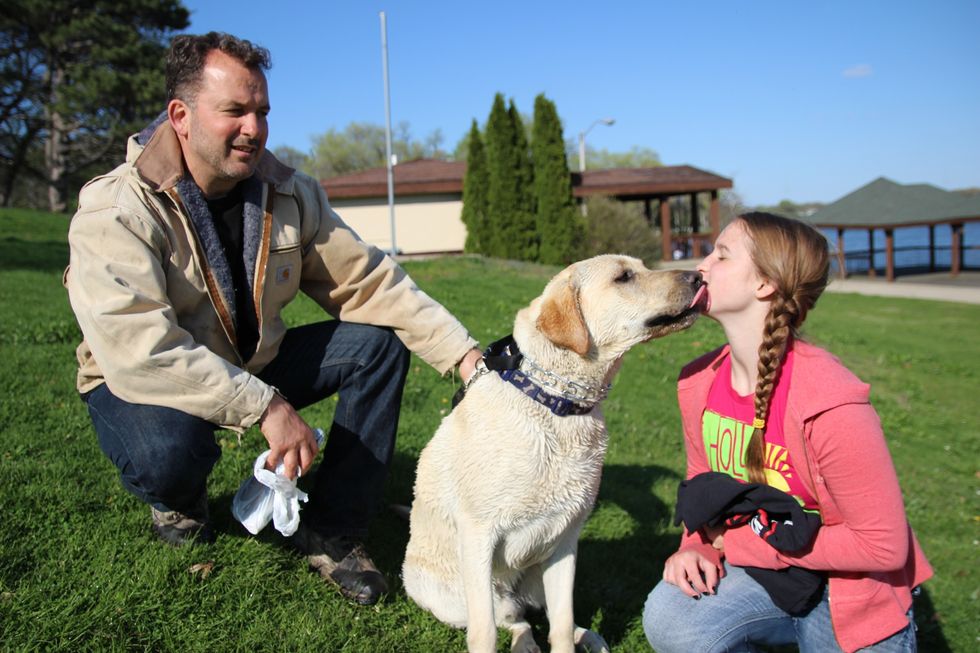 I love this picture of us! Puppy Dawg has his two favorite people––my dad and me––with him after playing with his duck decoy in Lake Decatur. It is hard to believe he was only one here.