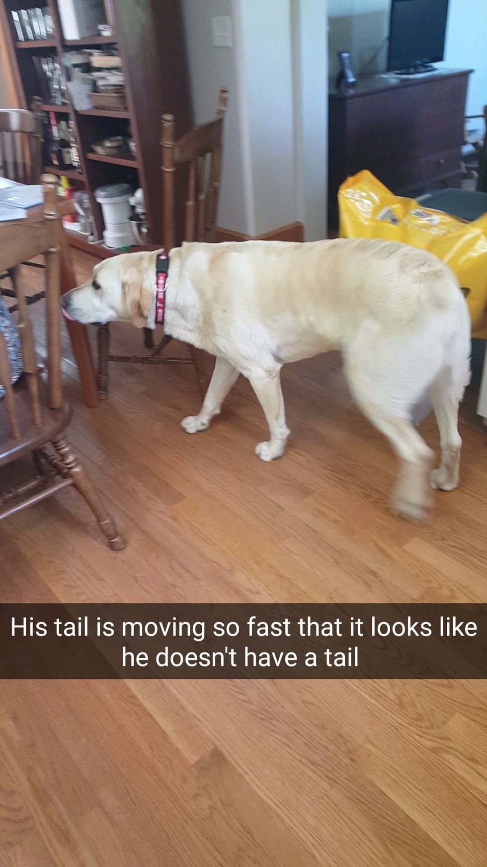 The caption says it all. Boomer is extraordinarily happy. Don't worry; his tail is still long.