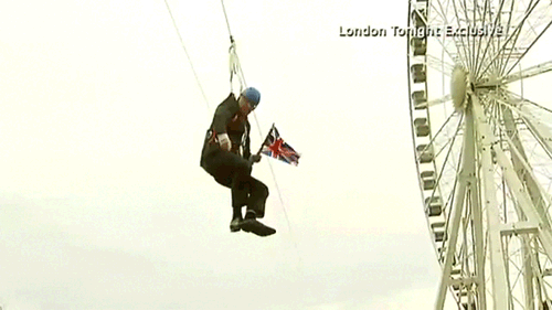Some say this clip stole the show at the Olympics. Boris straps up into his harness on the zip wire, waving his British flag, making us all proud to be British, but then gets stuck. It was at this point, as Boris dangled midair, that I knew this guy was the best person for the Prime Minister job.