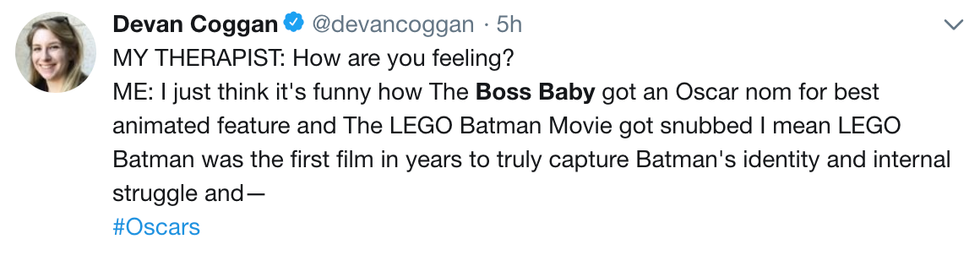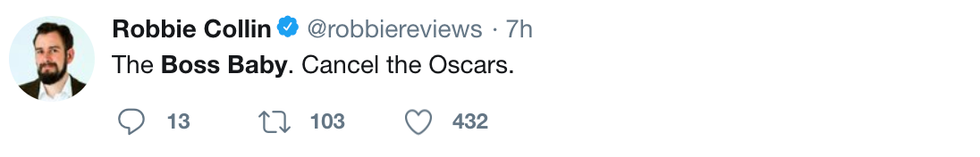Now, am I defending The Oscars or "The Boss Baby?" Not completely. I never said it was a good decision, I am simply stating that I can see the thought process. At least it was an original concept. An originally strange concept, but original, nonetheless.