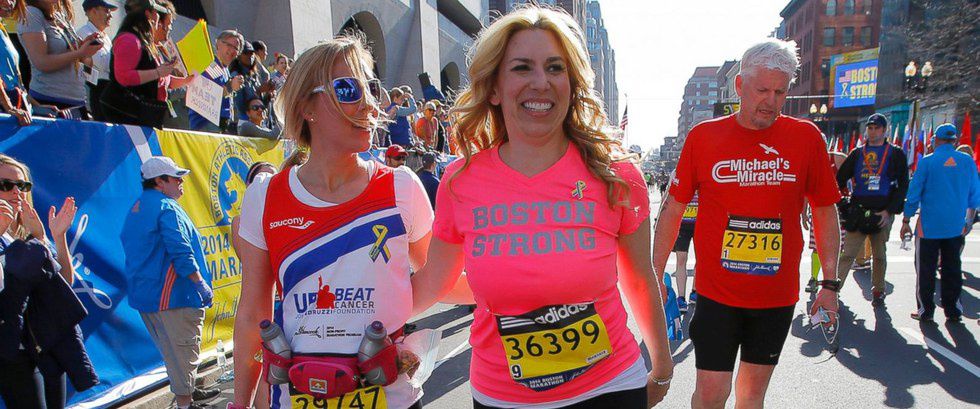 Boston Strong banners were seen throughout the marathon course.