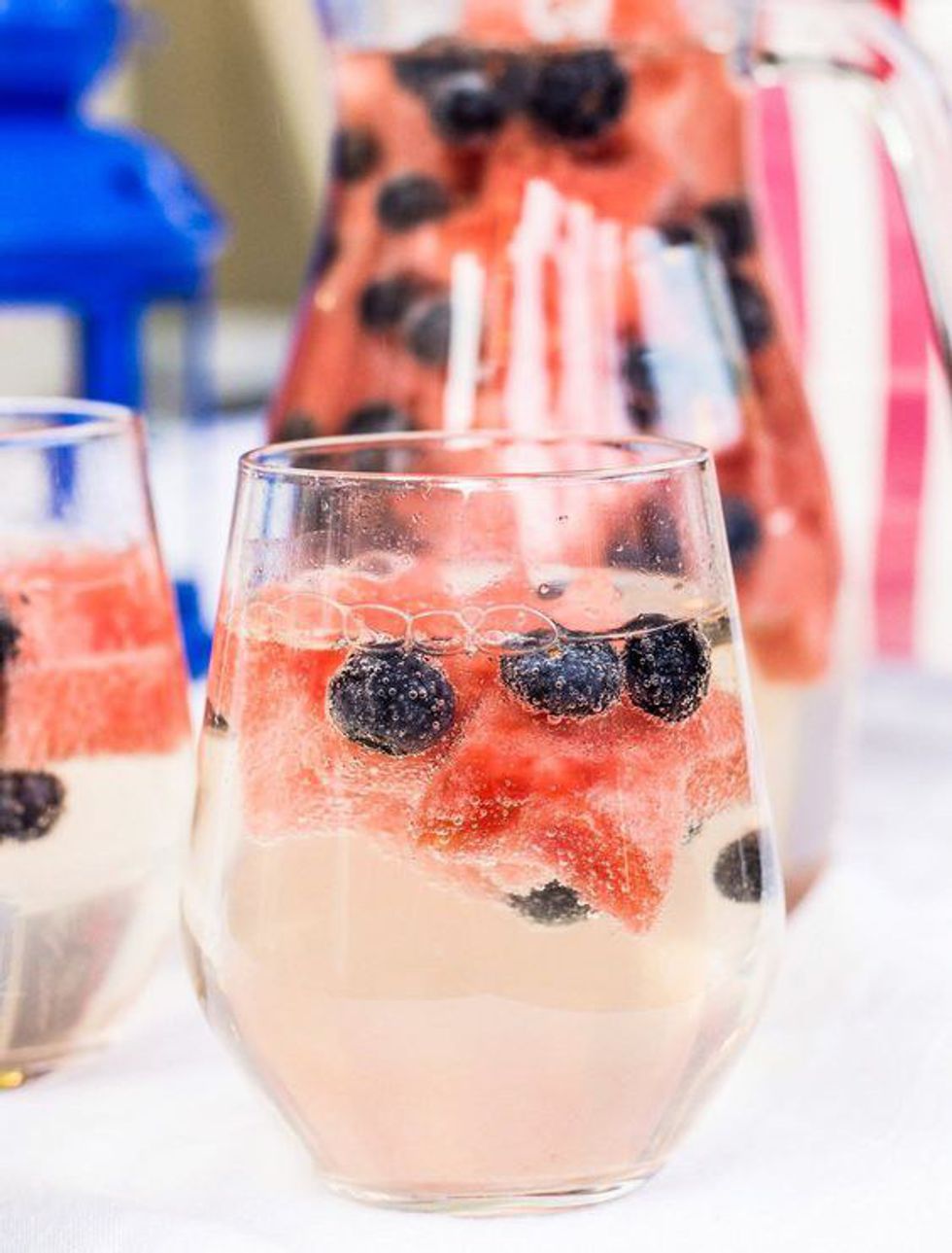 There's already so much to do as you prepare for the holiday, but this two ingredient cocktail will be the perfect drink for the pitcher. Place watermelon pieces, (that you can cut into star shapes), and blueberries in the bottom of a pitcher. Pour in white wine and soda, and mix gently. Serve with a few fruit pieces in each cup.