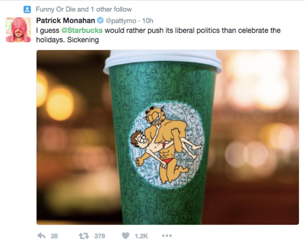 Sickening it is, Patrick. Now, it's worth noting that these cups are reported to be temporary, and not this year's actual holiday cups, but the point still stands it simply crosses the line. If anything, producing the cups temporarily at this moment just makes the crime even worse, by directly tying this disgustingly partisan propaganda to the election. My new fave Twitter user thought the same thing:YAAAASSSSS. You tell 'em, girlfriend!