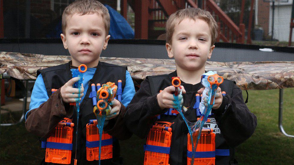 I crouched there behind the kitchen island plotting a swift exit. I battled my urge to comply with their innocent childhood imaginations while wanting, so desperately, to physically demonstrate my opposition to the bad decision-making on the part of the parents. The kids were wired up and they were waiting. I stood tall and proclaimed “force field” as confidently as I could. I knew it was a safe alternative to shooting back. I wasn’t comfortable with the idea of shooting random children. The sound of their cocked hammers slapping their plastic frames left me uneasy. These kids were only about 5 years old, at most, and there we were handing them toy guns. What were we teaching them? I wasn’t sure if Brazil’s mom was okay with guns or not. We hadn’t talked about them, but when would that conversation come up?