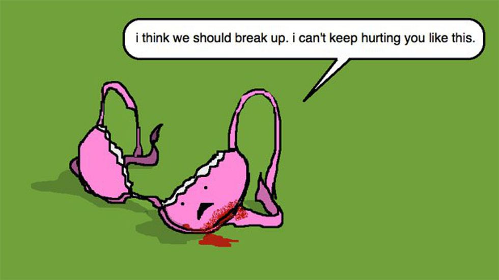 It is literally wire-cover clothe wrapping itself around your breasts and back, shoving your breasts to unnatural highs, restricting your breathing and airflow. And they are the bane of every girl's existence. What's a better feeling, after all, than flinging the contraption out of your shirt and into the hamper?