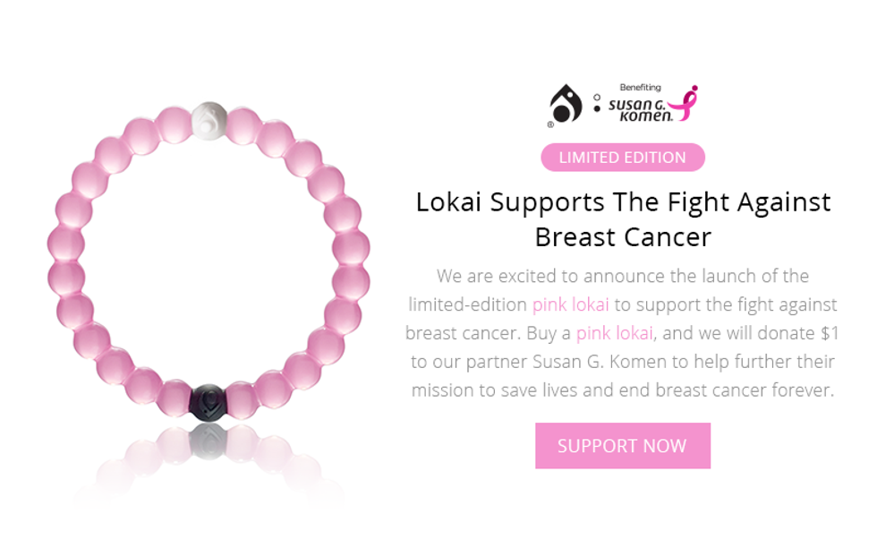 Lokai donates 10 percent of their net profits to different charities, such as the Susan G. Komen organization. They even have a special pink bracelet being sold for the month of October in support of Breast Cancer awareness.