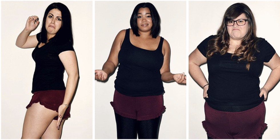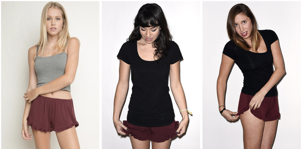 Here’s a little PSA before you go out to one of their few locations around the United States, their stuff does not “fit most.” In fact, their skirts are listed on their website as having a waist measurement of 12” to 14”, the equivalent of a size 0. Their t-shirts are no different, with a bust size ranging anywhere from 11” to 15”, according to this article, the equivalent to a 34A bra size at Victoria Secret. The idea of having a “one size fits most” tag seems completely awesome because it would attempt to eliminate the body image problem by eradicating the need to be the smallest size possible. However its almost too good to be true, and with Brandy Melville, obviously a lie. Buzzfeed conducted a little experiment, asking multiple women of different sizes, ages and heights to try on a few of Brandy Melville’s famous clothing articles.