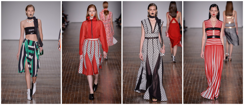Feminine and sophisticated shapes permeated the runway, accompanied by geometric shapes and forms, that give the brand a pop-art feel.