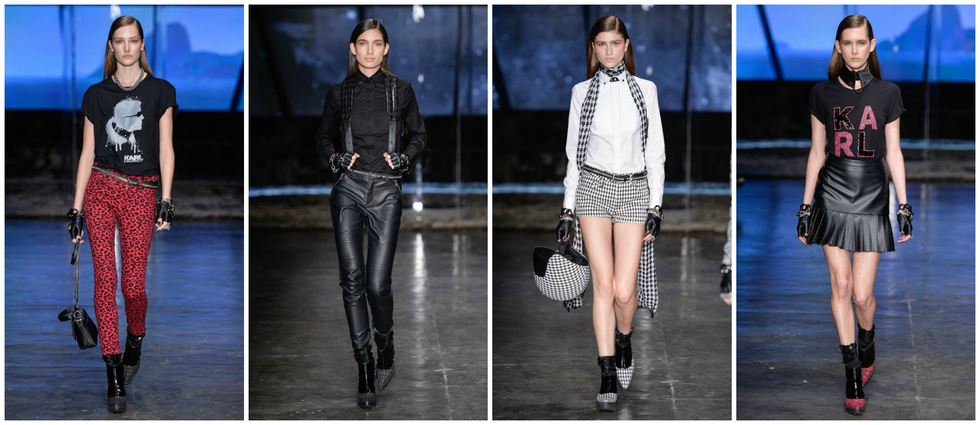 Black, white, and red with a touch of pink was the perfect color palette to portray Lagerfeld’s audacious nature in his designs.