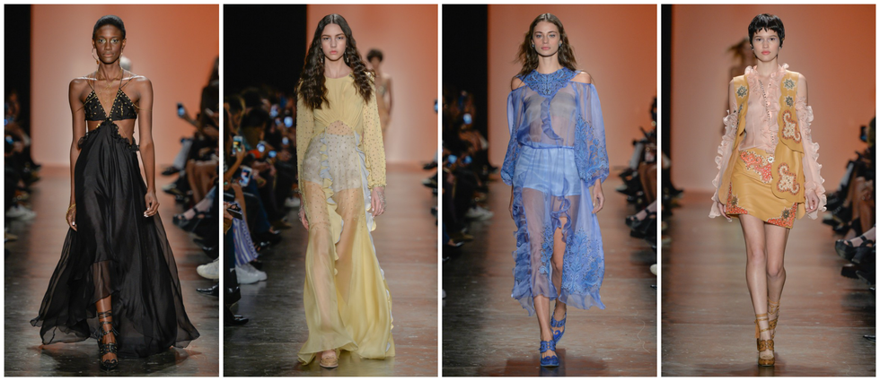 Gathering inspiration from the colors of the Brazilian flag, blues, greens and yellows flooded the runway with structured draping, sheerness and a mix between flowy and body-hugging fabrics to complement the rich selection of shades.