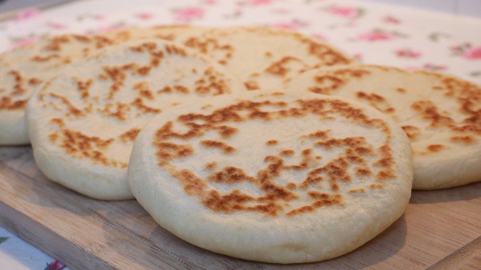 Bazlama is a thick, fluffy, chewy and elastic homemade bread. No, it's not pita bread. Every Turkish person has a memory of having warm Bazlama off the pan stuffed with sharp cheese and real butter dripping from the bottom. It is easy to make, ask your Turkish neighbor to make you some.