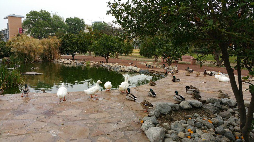 A very relaxing place to come and take a walk when you have too much on your mind. You are surrounded by orange trees that fill the air with a fruity scent. Watch out for the ducks, they hang out near the food dispensary because they know they'll get fed.