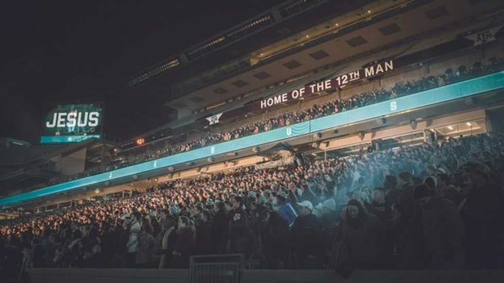 Imagine packing into THE one and only- home of the 12th man, farmers’ fight, the “we’re gonna beat you all to chigaroogarem, chigaroogarem, rough, tough, real stuff Texas A&M” football team- Kyle Field. But plot twist, this time it’s not to attend a football game. It’s to worship our almighty, everlasting God alongside thousands upon thousands of your classmates, sorority sisters, impact leaders, and friends.