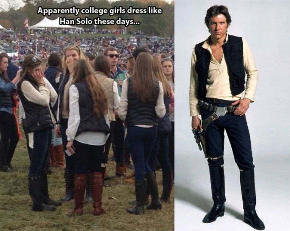 The puffer vest is a great piece of fall clothing to utilize because it keeps the body warm enough, but exposed enough to be able to take those all important selfies on your iPhone at any given time of the day. These have become so popular that the common BWG is now being referred to as a Han Solo look alike!