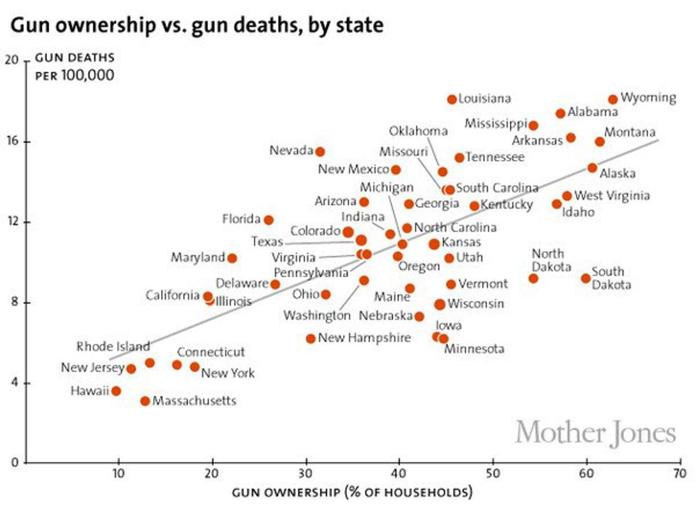 States with more guns have more gun deaths. That sounds like common sense. However, if you dig a little further and look at their gun laws, you'll notice that the states with more guns are the states where obtaining guns is fairly easy, like Wyoming. It's almost like, if you can have a gun, why wouldn't you? If it's there, it's more likely to be used. People don't think about gun deaths in terms of other types of gun violence such as domestic violence, suicides, or accidents most times but that's where a lot of gun deaths come from.