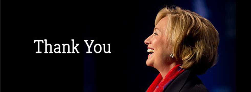 The words “Join us” are repeated six times towards the end of her speech, one after the other. Clinton names issues like women’s healthcare, domestic industry, healthcare, and others. Her message is to bring people together for one cause that affects everyone-- those who are directly affected by these issues, those who are close to these issues, and those who can afford to do something about it. Repeating “join us” is a call to action. Another reminder that nothing can be done alone.