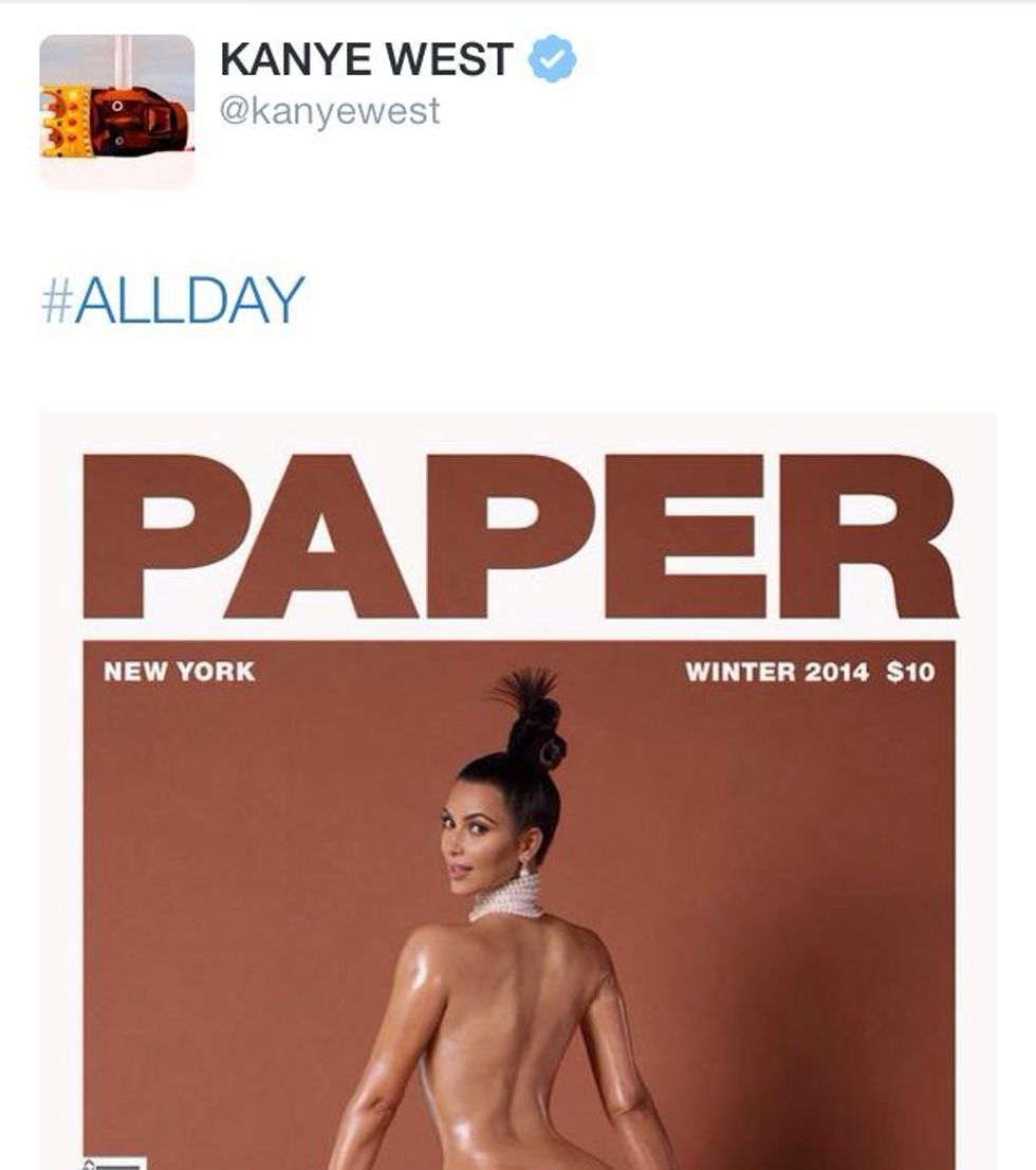 I mean come on, why you got to play the world like that, Kim? I can't say I'm mad, heck, the photograph is currently my iPhone background. Though I am a bit disappointed that I may have already seen the best bottom a girl could possess so early in my life. I now know how Eve felt after she bit into the forbidden fruit.