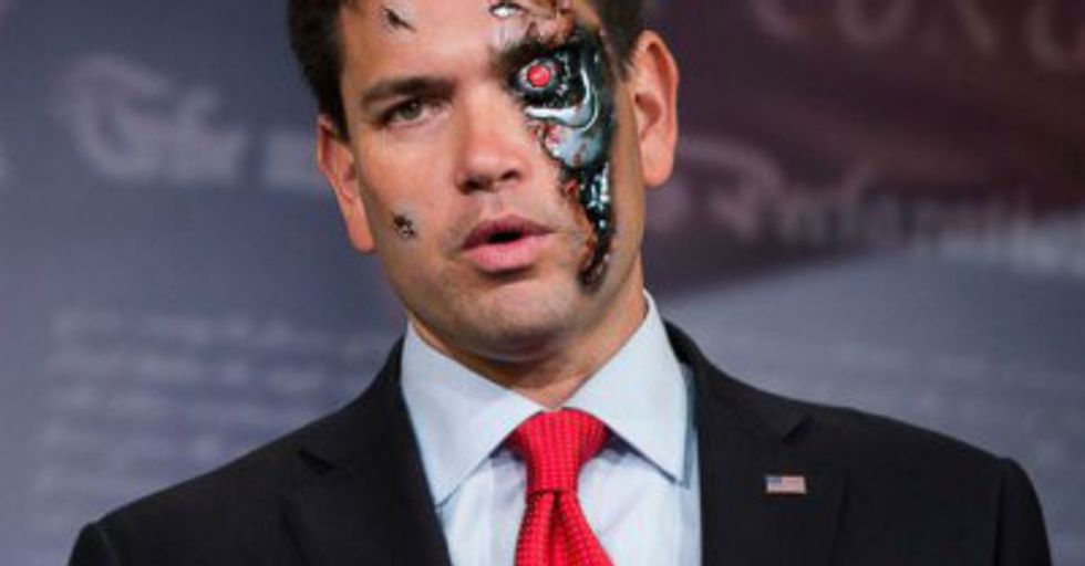 About him: Rubio is largely considered the future of the Republican Party. That's mainly because he was programmed that way (if you're curious about the robot jokes, click that link above). Anyway, Rubio is a polished and presentable politician. He supports all the things the Republican base wants him to support, he believes Obama has "deliberately ruined America" and he rocks a good pair of heeled boots.