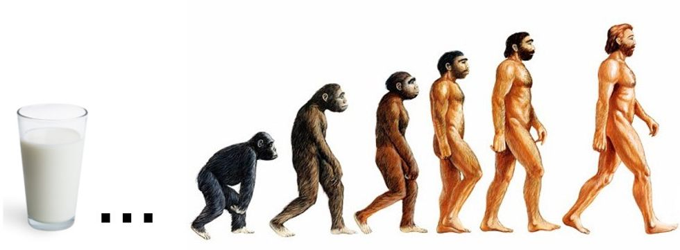 Let's move back a step, though. After the blue whale embarked on its galactic quest to find the answer to its ultimate question, comets began crashing into the planets of small solar systems. Due to the heat from the nearby stars, the milk from those white, frozen comets began melting and quickly spoiling because nobody had bothered to put the planet back in the refrigerator. If you've ever seen milk spoil, you'll remember that it begins sprouting green spots along the carton. Kind of gross, yes, but what are those green spots, you might ask? The answer may surprise you: it's life. How milk manages to spontaneously produce little spots of life is beyond my—and yes, top scientists'—capability of understanding the universe. There are some things which we must simply take at face value.