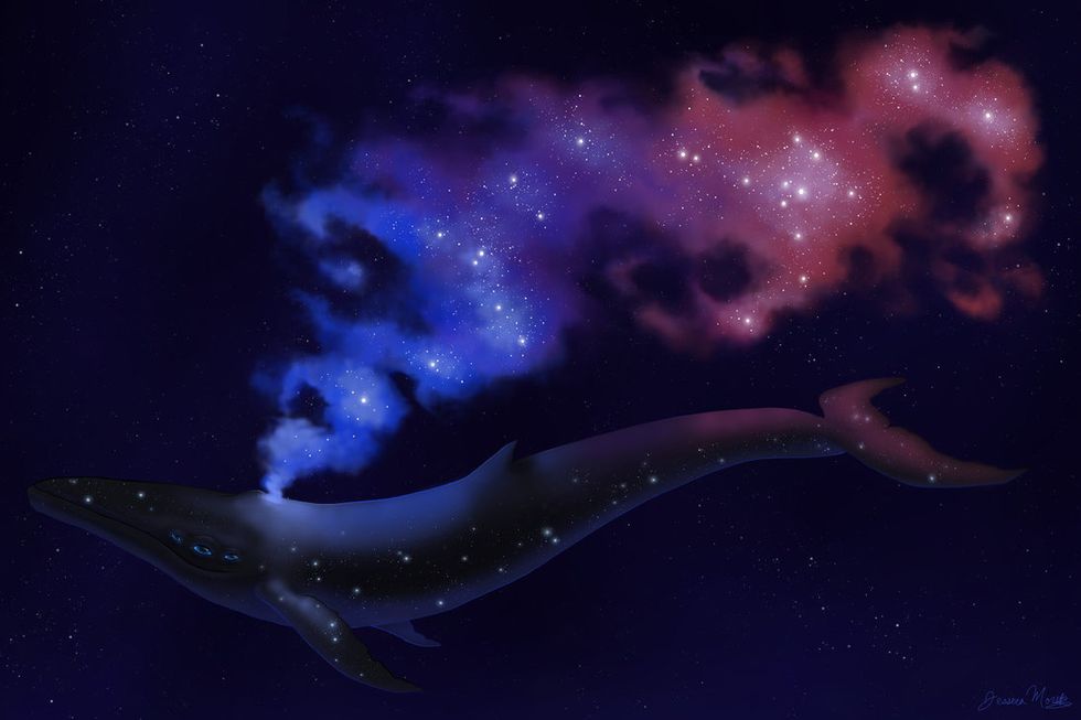 From the beginning of time to the very end of the universe, there was, and will have been, blue whales, all floating around space, unfeeling of the cold vacuum tearing against their thick, lumpy skins, searching and conversing for an answer to The Blue Whale's ultimate question, "What is the meaning of life?" while understanding that the other may not have been a human, nor a plant, nor an extraterrestrial or some higher being, and being wholly content with the difference because they are both cut from the same quilt that is the universe.
