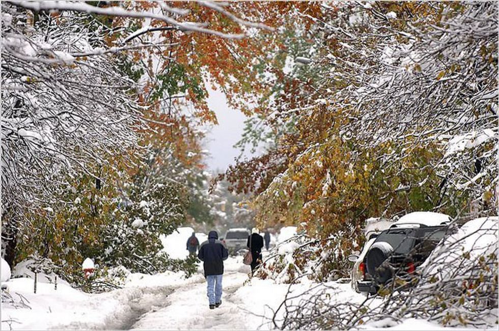 With no warning, snow, thunder, lightning, and wind all hit the north towns of the city, bringing down power lines, wrecking houses, and throwing trees every which way, resulting in maximum damage and EVERYTHING to be closed. For an entire week, people were without power, stores and schools were closed, and even today, ten years later, damage is still being repaired. Who else remembers still stepping over tree trunks and branches while trick or treating that year?
