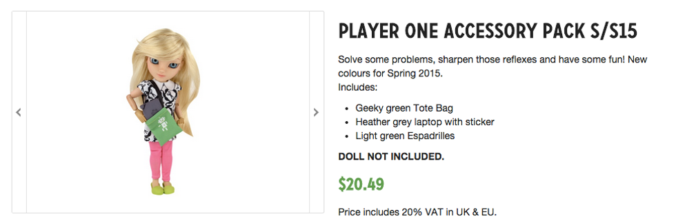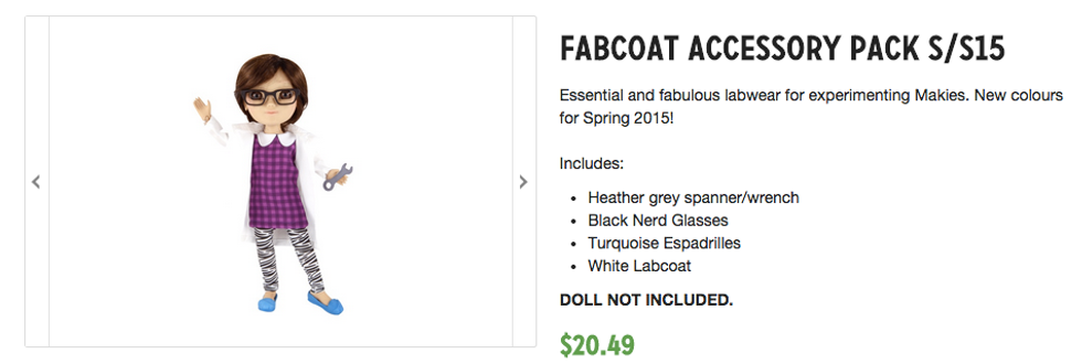 Not only do Makies give shoppers the option to create a doll just like them in appearance, but the dolls also promote education and individuality with their accessory packs and outfits (see the "I *heart* math" t-shirt above.) These aren't your run-of-the-mill fashionistas commonly seen among dolls; these dolls are rocking lab coats and using their laptops to do the things that inspire them. They are changing the world!