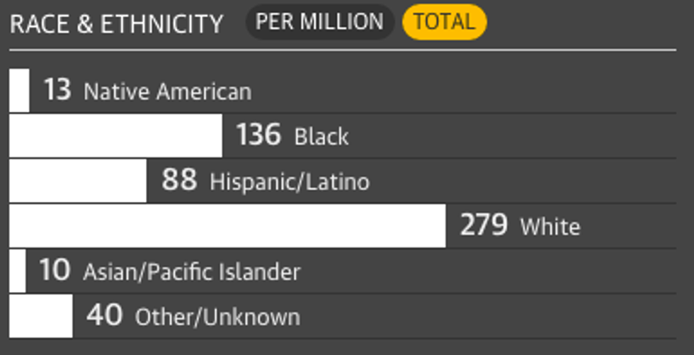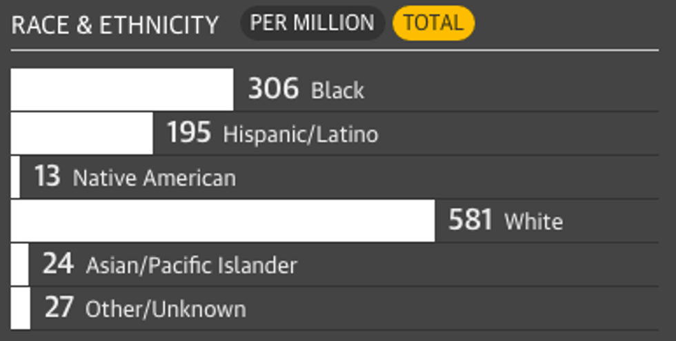 It is when you look at the total number of fatalities that you get a better sense of how many were killed. 581 white people and 306 black people were killed in 2015. 136 black people and 279 white people have been killed so far in 2016. These numbers are very similar to what the Washington Post has reported.