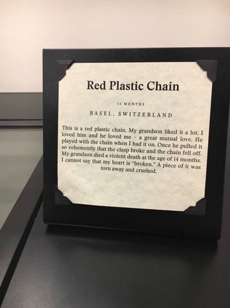 “The Museum of Broken Relationships explores broken love and other human relationships – what they mean to us, what they tell us about what we share and how we can learn and grow from them. It is composed of objects donated anonymously by members of the public from all over the world. Each exhibit is an object (some of them ordinary, some of them extraordinary) and a story, which together recount a watershed event in someone’s life.”
