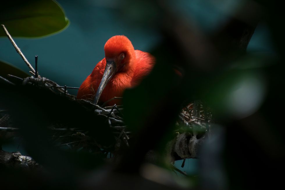 The purpose of a nest is to give birds a safe place to sleep.They’re usually sheltered high up in trees out of reach of predators and prying eyes.In order to carry over the idea of nests and safety, I framed the bird with branches and leaves, much of which I left in the composition instead of cropping it.Very little of the image is actually of the bird, and it gives the viewer the sense that the bird and its nest are distant and inaccessible.