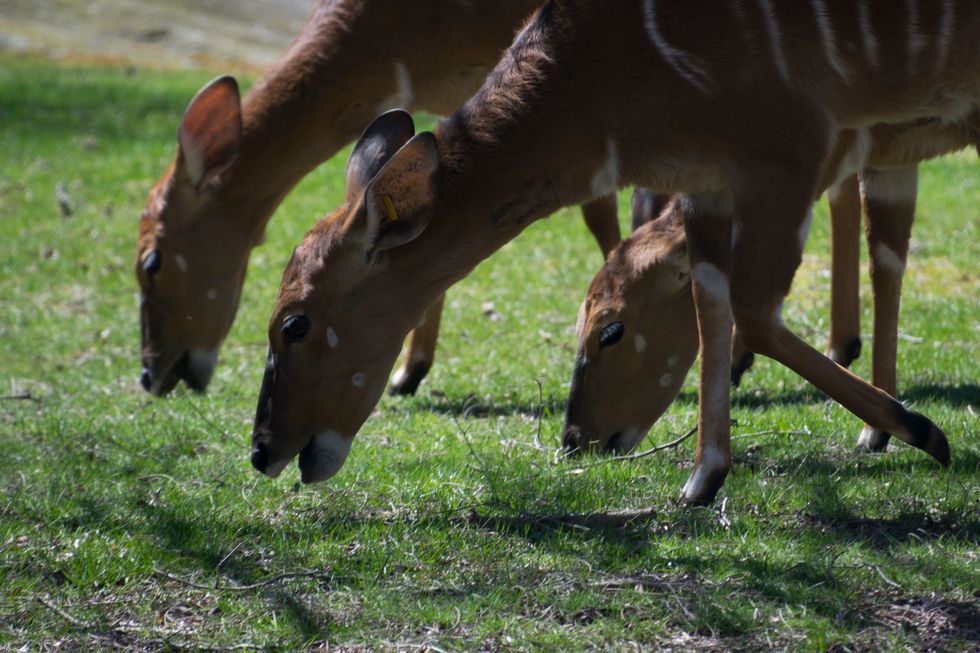 Triptych – Three female Nyala graze together