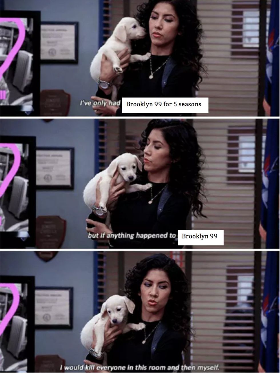 This season has seen tremendous growth with Jake and Amy getting engaged and Rosa Diaz coming out to her squad as Bisexual. The LBGTQ community is outraged and so am I! This show is too good to not continue!