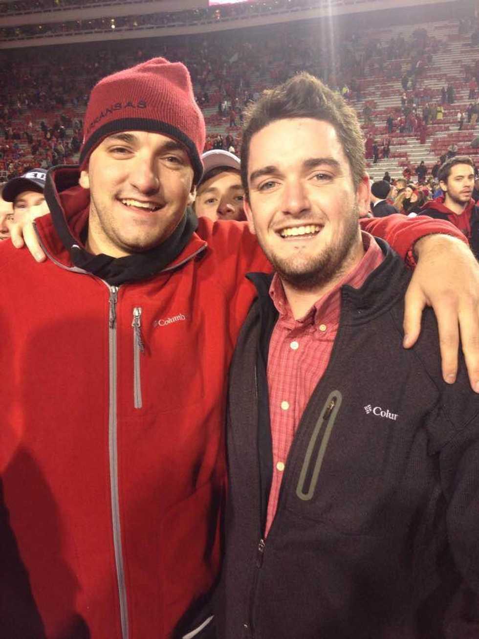 I quickly began to realize that my love and drive for our fraternity was not only about my independent actions, but was also a conduit of my feelings of thanks to my brother and my father, two men who taught me how to live a life similar to those laid out by our founding fathers. I began to wish that my brother, a man that I learned much from, could experience what we as undergraduates are blessed to do in our everyday interactions with each other. These feelings came to a head during a stressful and jubilant time in both my brother and I’s yearly life: Razorback Football season.