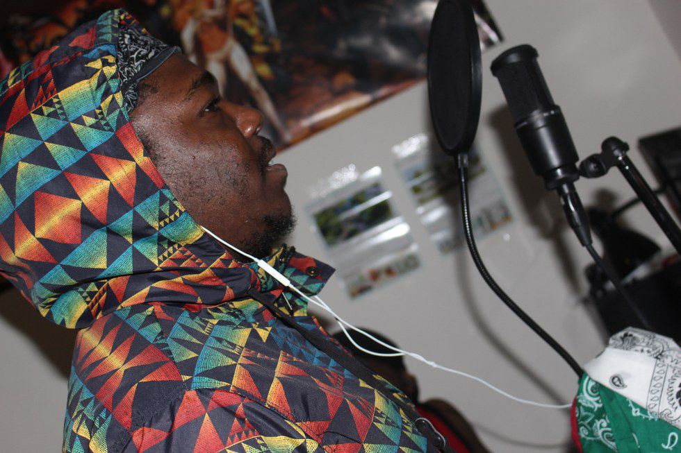 “Shoot, I didn’t know y’all were coming, too,” I tell the Gutta Twins, grinning as I dap everybody up. As Caetano moves back toward the microphone, I ask the Twins if they’re recording as well, to which they reply that they’re only there to chill. They like to record in the morning, before the motions of everyday life distract their process, and it was a little too late in the day for their usual grind.