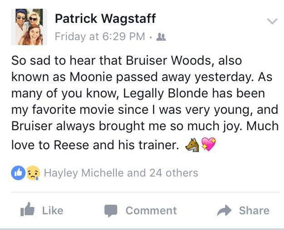 She and all of the “Legally Blonde” fans are devastated. We will always remember Bruiser for the little dog he was with his colorful sweaters and fashionable choice of shoes.