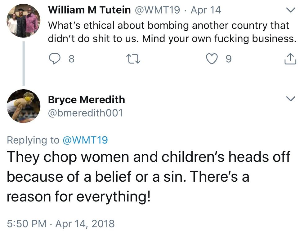 He justified intervention in the Middle East because of xenophobic notions of Islam.