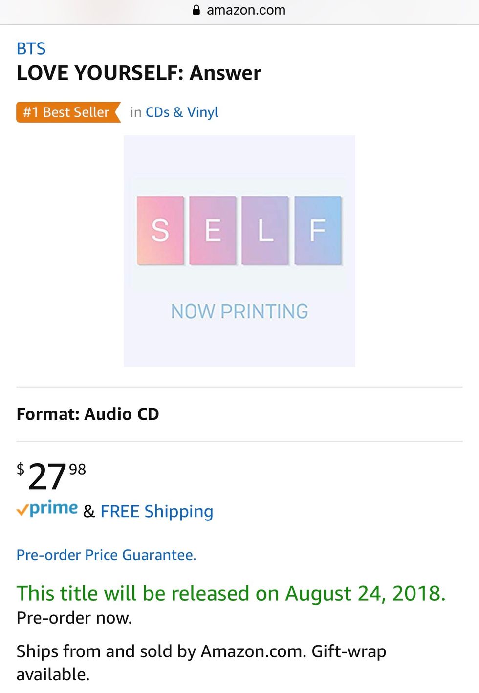 BTS Fans, known as BTS Army, are super excited to get their hands on "Love Yourself: Answer," and it's now available for pre-order on Amazon! Their album cover and the tracklist both continue to remain unknown, but fans are super excited to find out what the band will do next. It's possible for them to release the song names as they did for "Love Yourself: Tear" before it was released. Many people are ready for it, including myself!