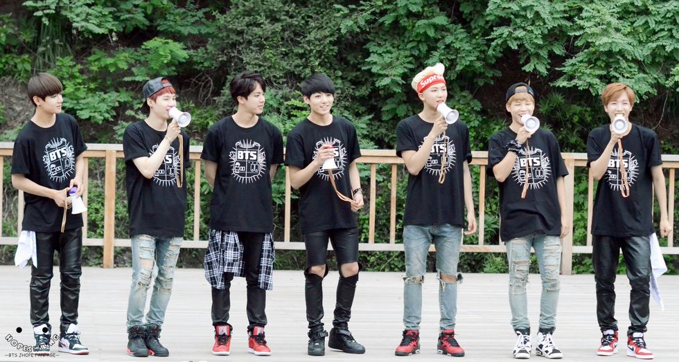 BTS stands for Bangtan Sonyeondan or 방탄소년단 in Korean. The name translates to Bulletproof Boys but recently, they announced that another meaning to their name is Beyond the Scene for their English-speaking fans. Not unlike how Lady Gaga fans are called Little Monsters or how Justin Bieber fans are Beliebers, fans of BTS also have a unique name: A.R.M.Y standing for Adorable Representative MC for Youth. Yep...not cringe at all...