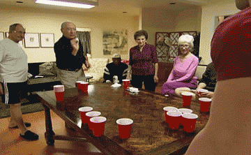 Don't be like this old guy playing beer pong for the first time,even though he's pretty good