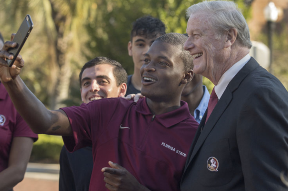 16. Try your hardest to bump into President Thrasher on campus and snap a pic with him