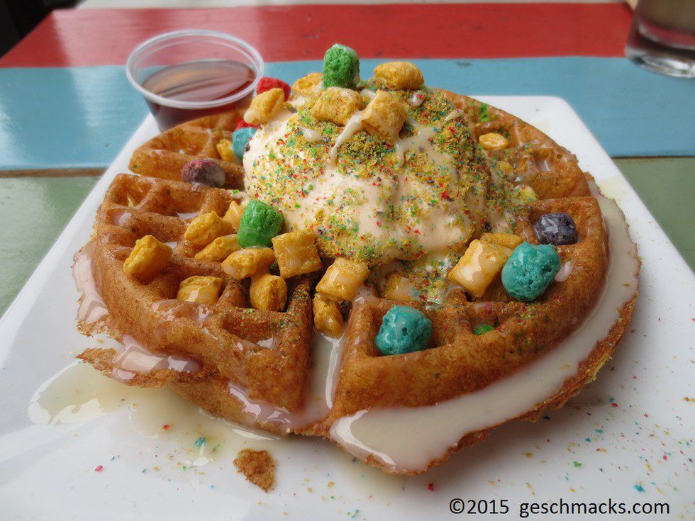 Attempt number two at completing the bucket list led us about 40 minutes and three freeways inland to the Anaheim Packing District, which is known for having a unique food selection and an artsy setting. We had one place in mind: The Iron Press. This place apparently has really good food and is unique because everything is made on waffles. We sat down at an outside table and were drooling over the menu when we realized that no one was coming to take our order so one of my friends went inside to order a drink and to find a waitress. He comes back outside looking pissed and explains that he tried to order a beer, with his real ID that clearly states he is over 21, but the waitress took one look at it and said “This is fake.” He proceeded to show her his school ID and a credit card to prove his age and identity but she refused to accept any of these as valid forms of ID. As he is telling us the story we respond by saying “Wow that’s so dumb” just as the waitress, who happens to be the same girl who rejected his ID is approaching our table. She whips out her little order-taking notebook and says in the most passive-aggressive way you could imagine “Yeah I’m so dumb for following the rules. What do you guys want?”. We could not believe this kind of behavior from a waitress and as receiving customers we were shocked. We awkwardly ordered and when she’s done writing it all down she says that she needs a credit card to hold the order? Okay lady. I’ve been to hundreds, probably thousands, of restaurants in my life and I have NEVER had anyone say that they needed a credit card to hold our order. It was ridiculous and it was clearly because she didn’t trust us and thought we would do something sketchy, which I find to be slightly offensive seeing as we had done nothing wrong. After she walked away and we had time to process everything that had just happened we all decided that we were way too pissed to eat there so we bailed from our table and told the waitress that we had changed our mind. The unfortunate result was that none of the other restaurant options had very good food (except for the ice cream we had for dessert) so we ended up eating mediocre food that we weren’t all that thrilled about while still fuming from the previous events. The whole venue was overcrowded and underwhelming and we all agreed that we were never coming back unless the world was ending and it was the only food option that was left. We turned the night around though by cruising over to Downtown Disney, which we were right next to, and watching the Disneyland fireworks show. Lesson learned here: Artsy food comes with a price.