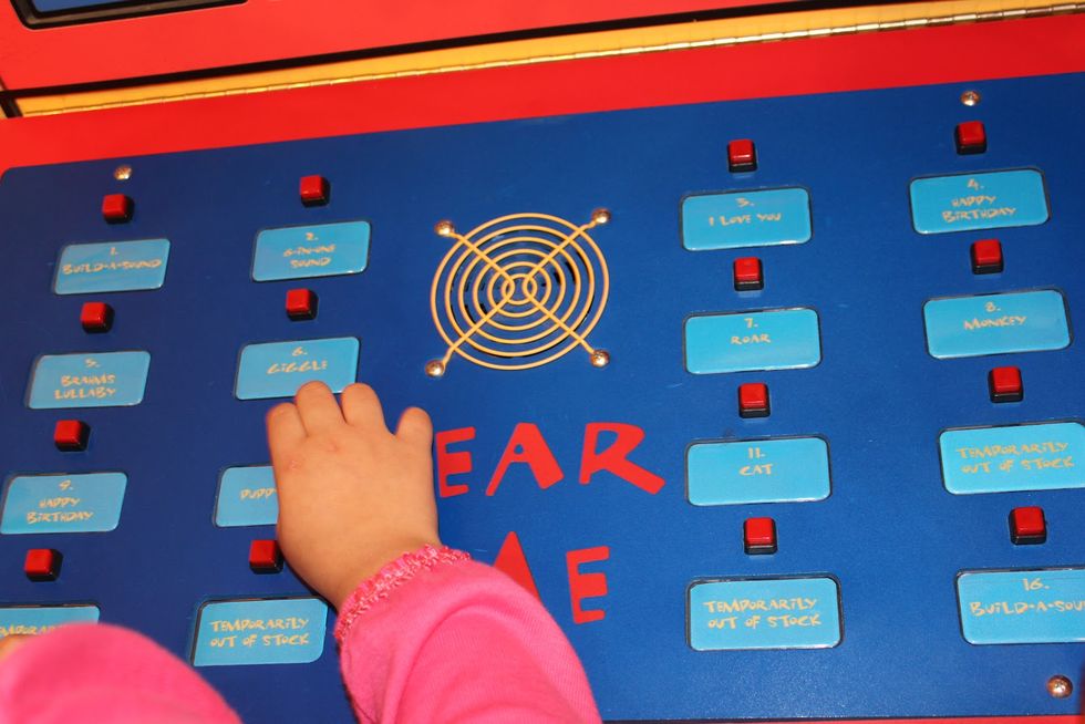 The sound station is super fascinating for most kids, I guess it has to do with pushing all the buttons, or on the newer digital ones, being able to put popular pop songs into their bear. Sounds are cute, but the batteries run out. They are supposed to last for around 1,000 clicks. But once those are up, the battery starts dying and the sounds become...well...the word we used to use was "demonic". It's not pleasant. The only time I encourage sounds if it's for a specific character and you want the full-blown experience. I have sounds in some of my own bears, and the only ones I like are the character specific sounds. The other ones get suuuuuper annoying after a while. Also there are almost never sales on sounds, and they run from $4-$8. Just more to tack on to the bill at the end.