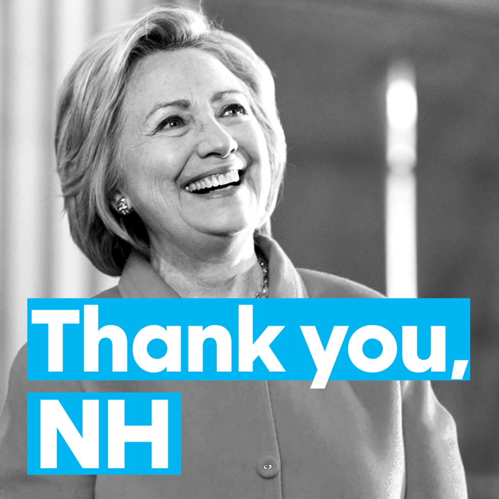 After losing the New Hampshire primary, Clinton took to Facebook with the picture above and a message of respect: "To Bernie Sanders, congratulations. To New Hampshire, thank you. And to our volunteers: I’m so grateful for what you built. Now, onward. -H." If the candidates can be respectful toward each other in the face of adversity, so can we.
